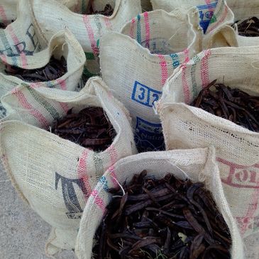 Ancient Greeks were the first to grow carob trees, which are now grown all over the world. Each carob tree is single-sex, so it takes a male and female tree to produce carob pods. A single male tree can pollinate up to 20 female trees. After six or seven years, a carob tree is able to produce pods. Once a female carob tree is fertilized, it produces hundreds of pounds of dark brown pods filled with brown pulp and tiny seeds. The pods are about 1/2 to 1 foot in length and about an inch wide. People harvest pods in the fall.